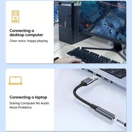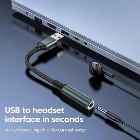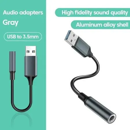 Adaptador de áudio desenvolvido para permitir a conexão de dispositivos de áudio com conector P2 (3,5 mm) a equipamentos que utilizam interface USB, atuando como elemento intermediário entre os dois padrões de conexão.