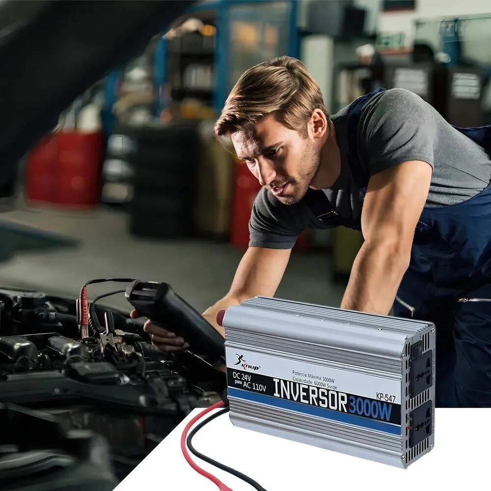 O Inversor Conversor de Tensão Veicular Knup KP-547 é desenvolvido para transformar a energia de sistemas 24V em corrente contínua em 110V em corrente alternada, permitindo a utilização de aparelhos elétricos em veículos e ambientes móveis.